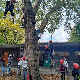 In der ersten Herbstferienwoche hatten wir in der OGS die Kletterschule „Kletterfuchs“ zu Besuch, um die Schulbäume am Zugweg zu beklettern. Die Kinder haben gelernt, sich gegenseitig abzusichern, und sind über ihre Ängste hinausgewachsen. In bis zu 10 Meter Höhe wurde geklettert und zwischen den Bäumen geschaukelt. Alle Kinder und auch Eltern, die zuschauen durften, waren begeistert.