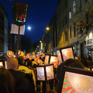 Am Abend fand dann der traditionelle Martinszug statt. Alle Kinder kamen mit ihren bunten Laternen, die sie in den Wochen zuvor mit viel Eifer selbst gebastelt hatten. Begleitet von Musik und Gesang zogen wir durch die Straßen der Südstadt. Zum Schluss versammelten sich alle am großen Martinsfeuer, das den Tag stimmungsvoll und warm ausklingen ließ.